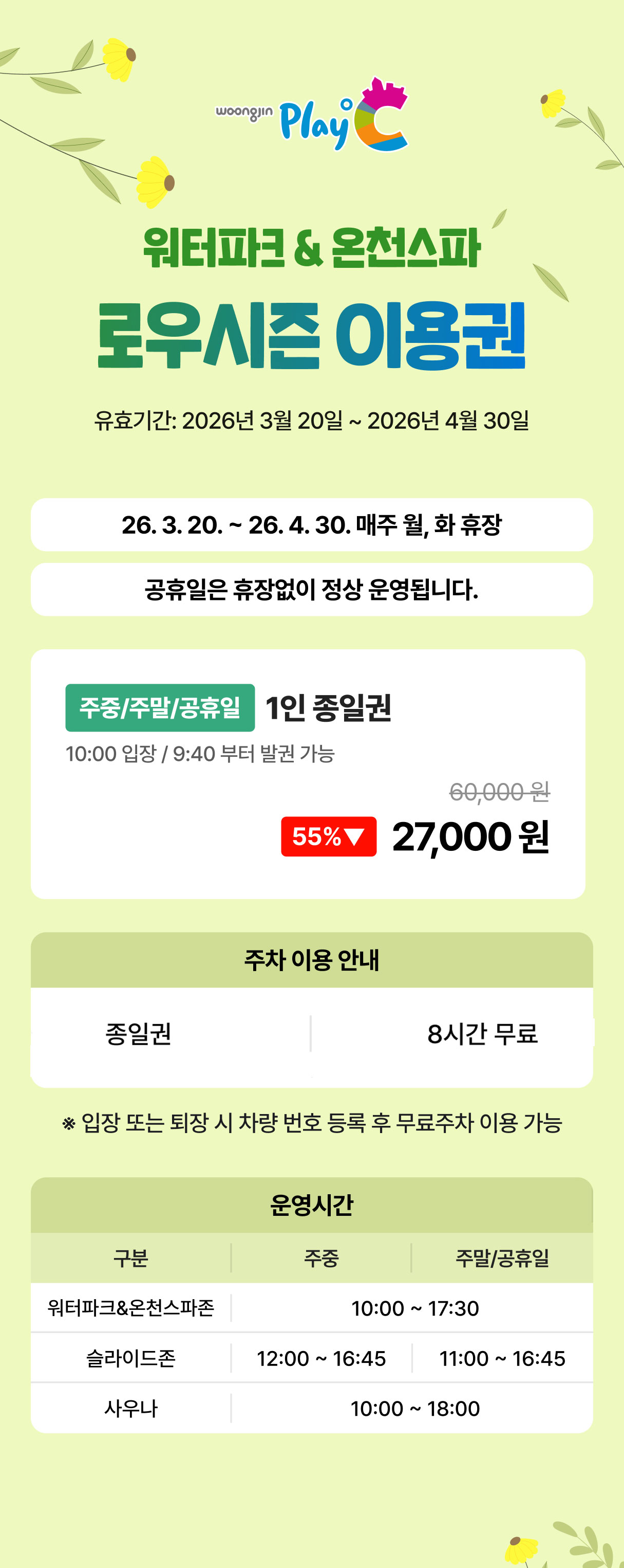 (온라인, 당근마켓 등)- 티켓 유효기간 : 시즌별 운영기간까지