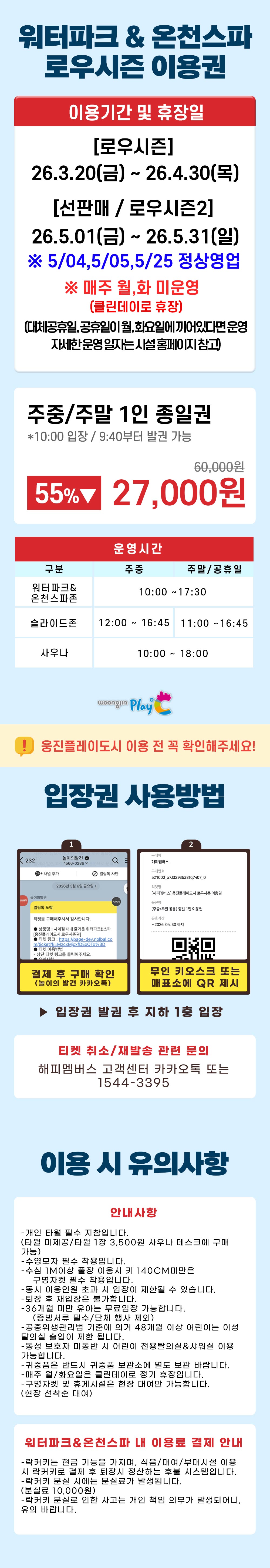 - 유효기간 내에 미사용 하셨더라도 자동 환불 진행되지 않으니 반드시 고객센터로환불 접수 부탁드립니다.-해당 티켓은 부분취소 및 부분환불이 불가합니다.
