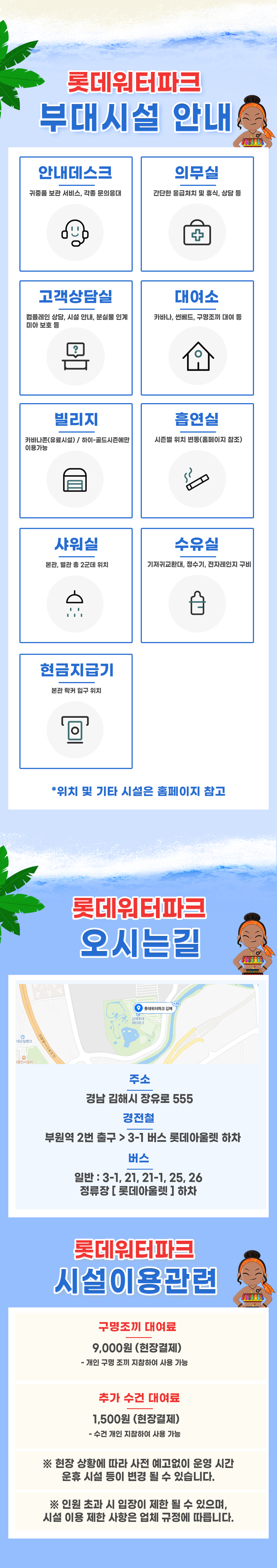 ※ 통화가 안될 경우 카카오톡 채널 롯데워터파크 손님 안내로 문의 주시면 답변 드리도록 하겠습니다.
